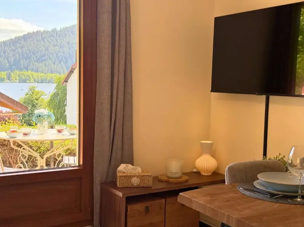 Le Cocon du Lac, terrasse, vue lac se trouve à 5c 5 Chem. du Village Vosgien, 88400 Gérardmer, France. Cet appartement offre une terrasse équipée d'une vue panoramique sur le lac, idéale pour profiter des paysages naturels. Situé à proximité immédiate du lac Gérardmer, il permet un accès facile aux activités nautiques et randonnées. Les visiteurs peuvent découvrir diverses attractions locales telles que le Bar la Ruelle à 1,1 km ou les Rives du lac situées à 450 mètres. Des commodités comme un parking gratuit sont disponibles. L'appartement dispose également d'un accès internet sans fil gratuit.